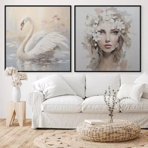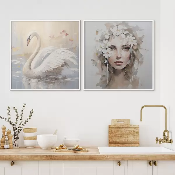 Poster Zwaan en portret van een meisje, imitatie schilderij Nr d01030