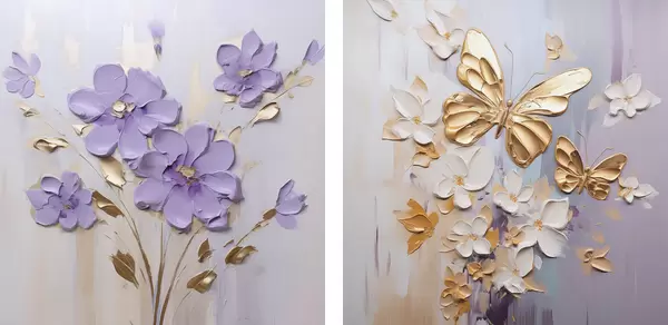 Poster Schilderij met imitatie van vlinders en bloemen Nr d01046
