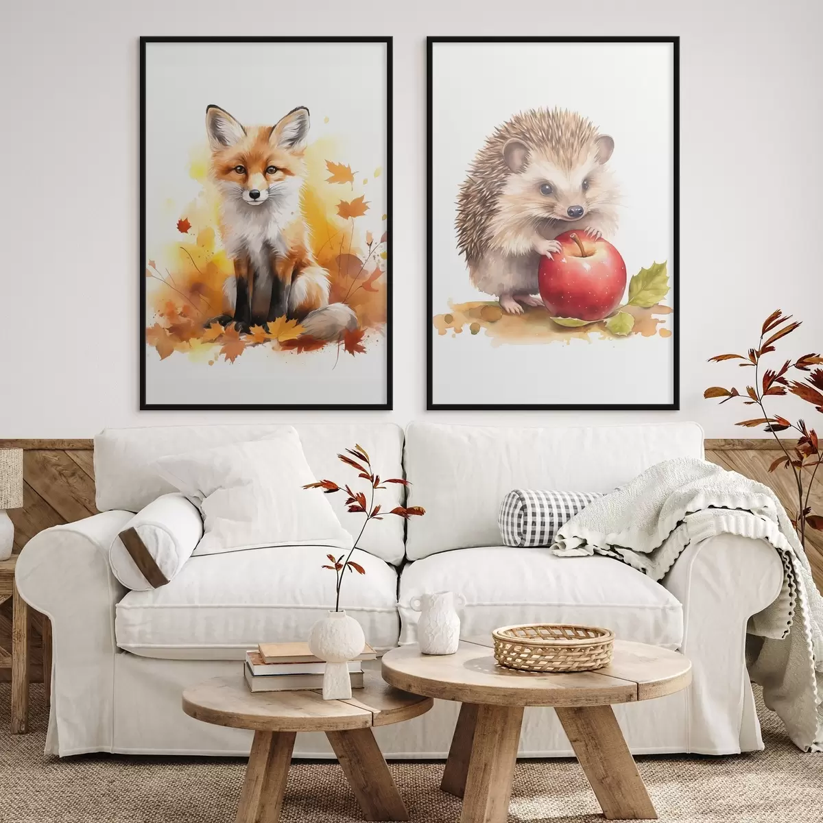 Poster Vos en egel, imitatie-aquarel Nr d01050