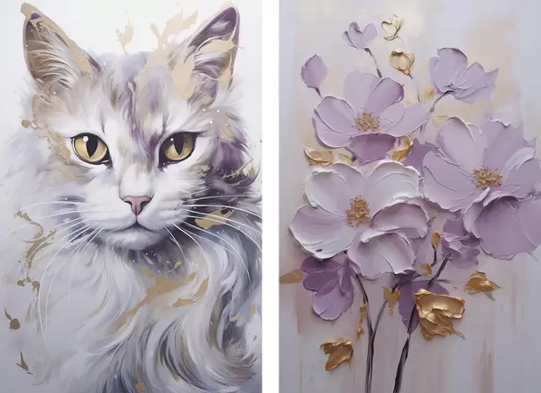 Poster Abstracte bloemen en een kat Nr d01056