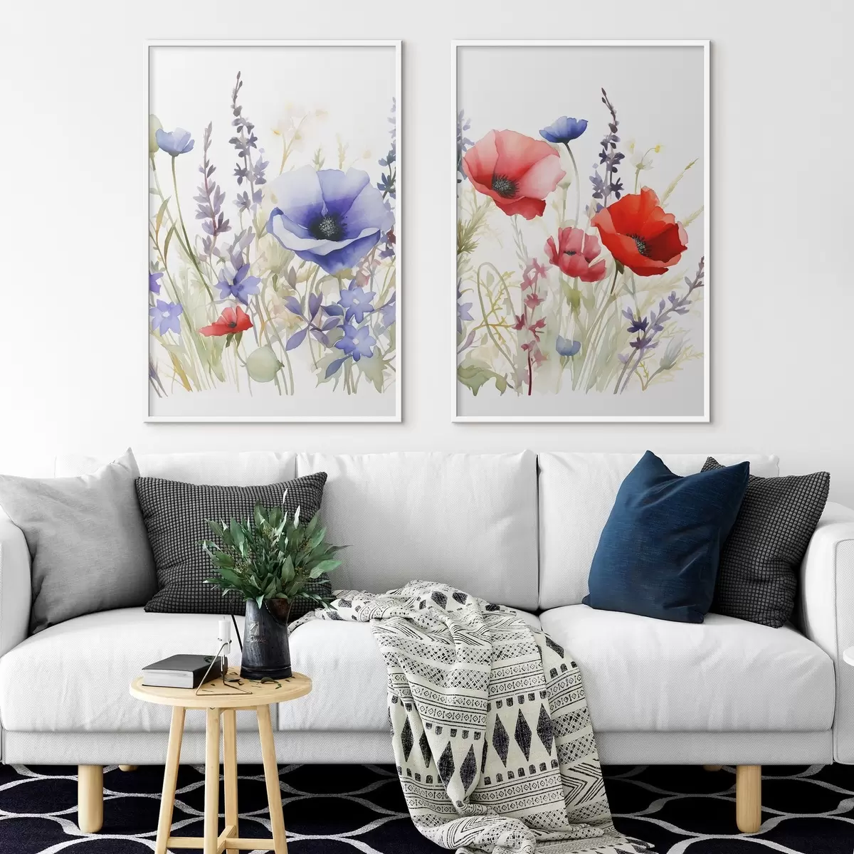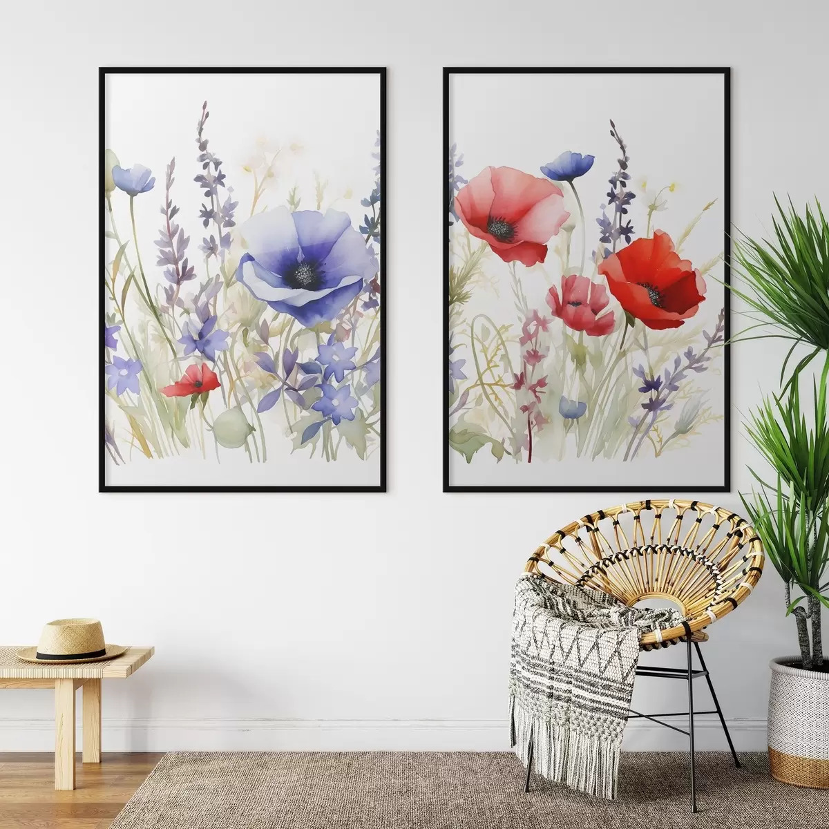 Poster Klaprozen in een veld, aquareleffect d01067