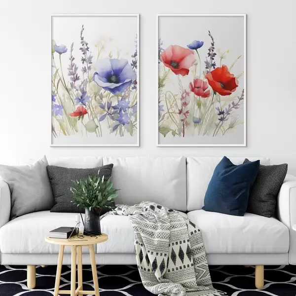 Poster Klaprozen in een veld, aquareleffect Nr d01067