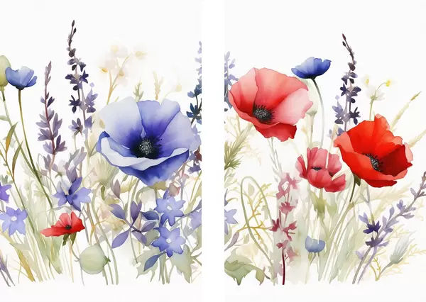 Poster Klaprozen in een veld, aquareleffect Nr d01067