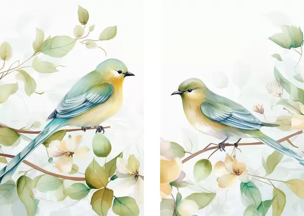 Poster Twee mezen op jasmijn takken Nr d01069