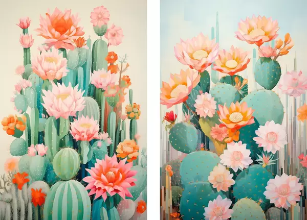 Poster Cactussen met grote bloemen, een pastelkleurenpalet en een gevoel van rust Nr d01086