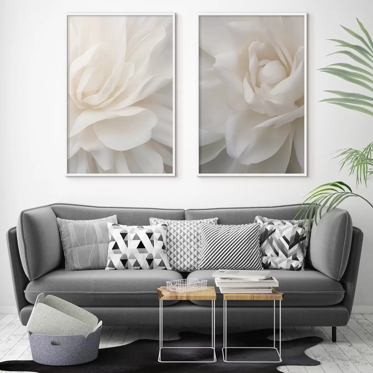 Poster Abstracte witte bloem met delicate, gelaagde bloemblaadjes, minimalistische kunst Nr d01120