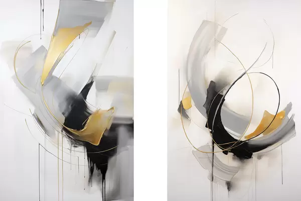 Poster Abstract schilderij met gele en zwart-witte penseelstreken, dynamische lijnen Nr d01125