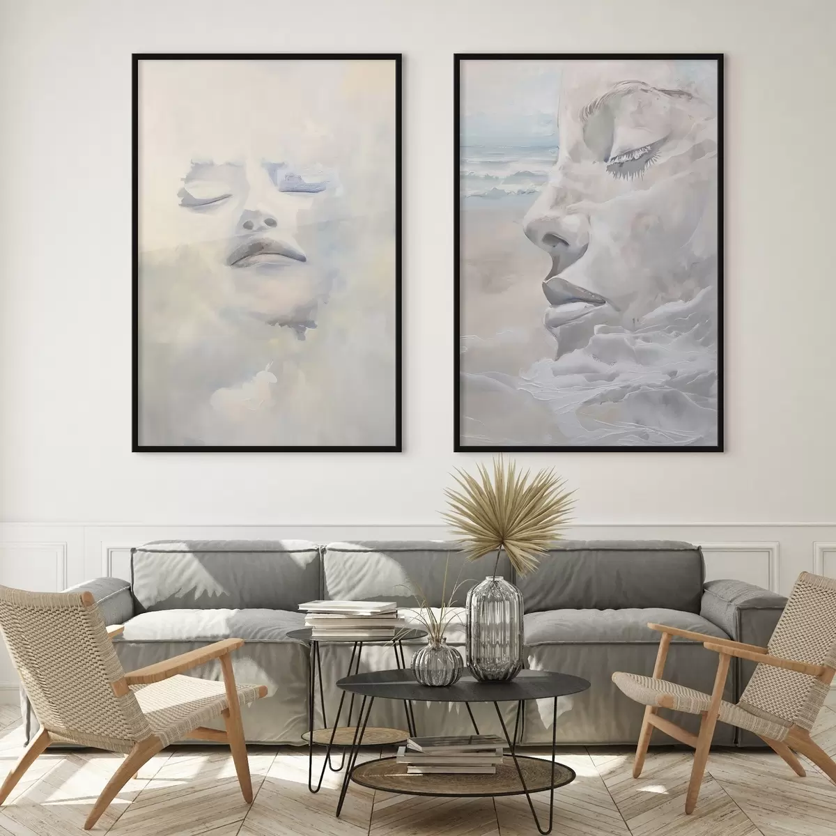 Je kunt het schilderij ophangen aan schroeven. Hiervoor leveren we bevestigingen bij onze foto's, zodat je de foto gemakkelijk kunt ophangen.