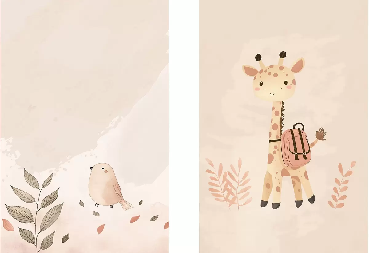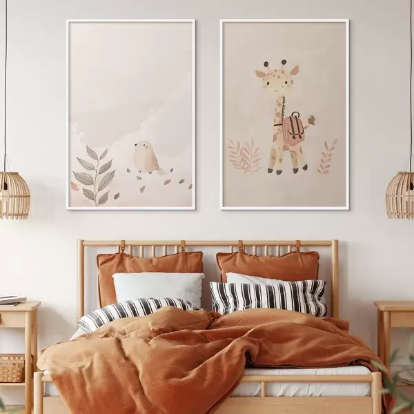 Poster Giraffe en vogel Nr d01148