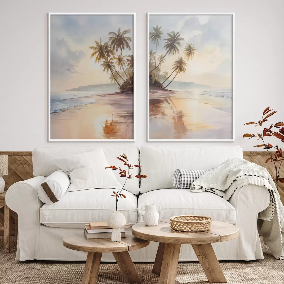 Poster zonsondergangstrand op een eiland in aquarelstijl d01177