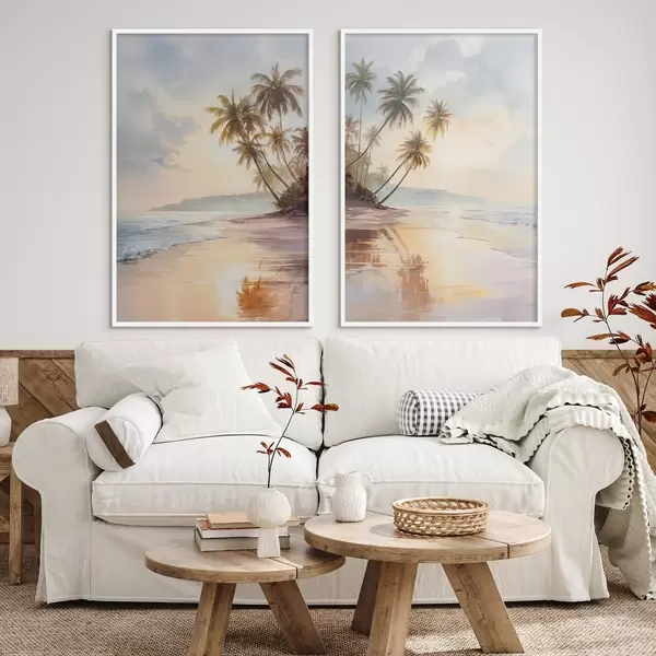 Poster zonsondergangstrand op een eiland in aquarelstijl Nr d01177