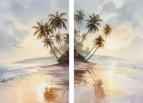 Poster zonsondergangstrand op een eiland in aquarelstijl Nr d01177