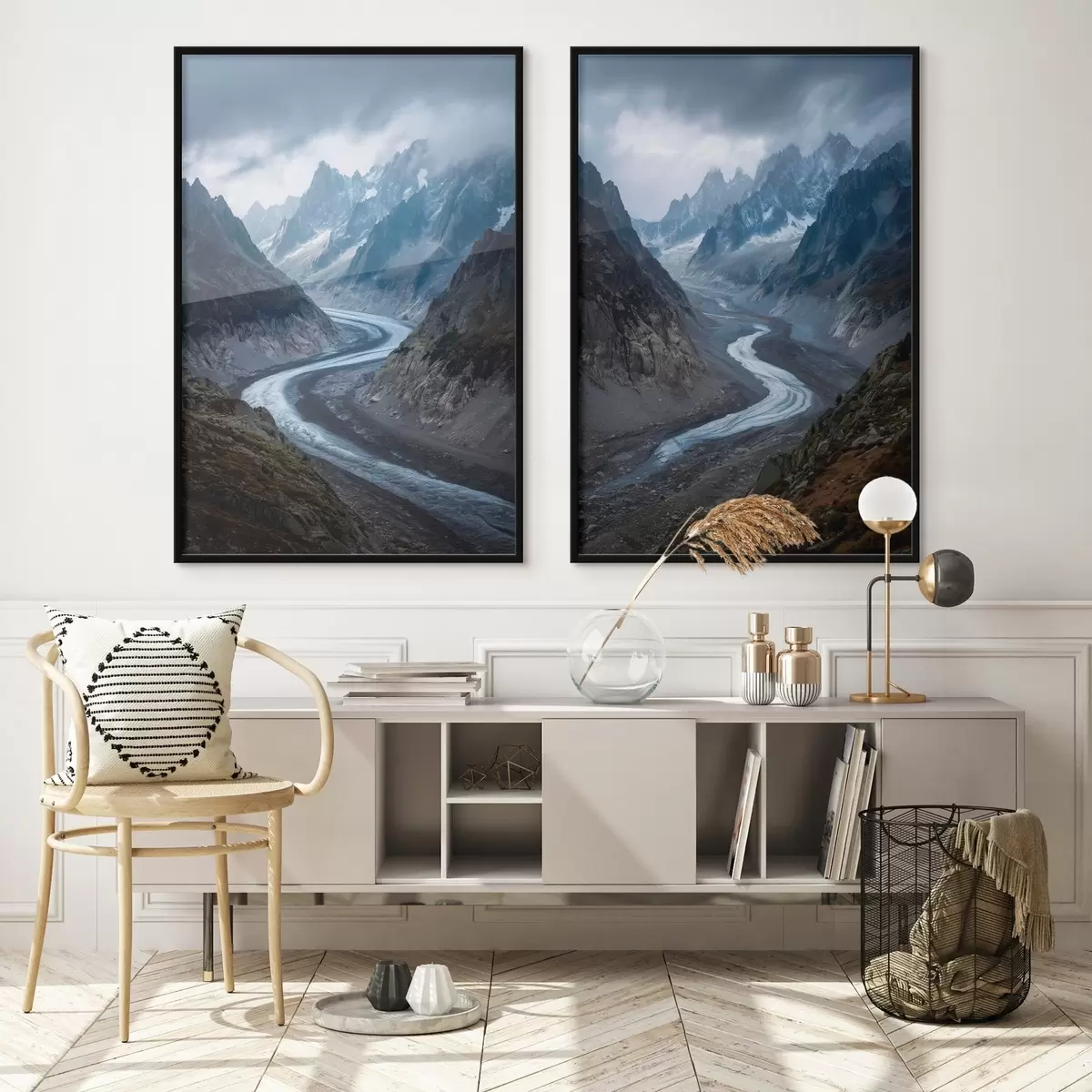 Je kunt het schilderij ophangen aan schroeven. Hiervoor leveren we bevestigingen bij onze foto's, zodat je de foto gemakkelijk kunt ophangen.