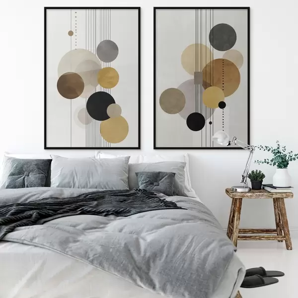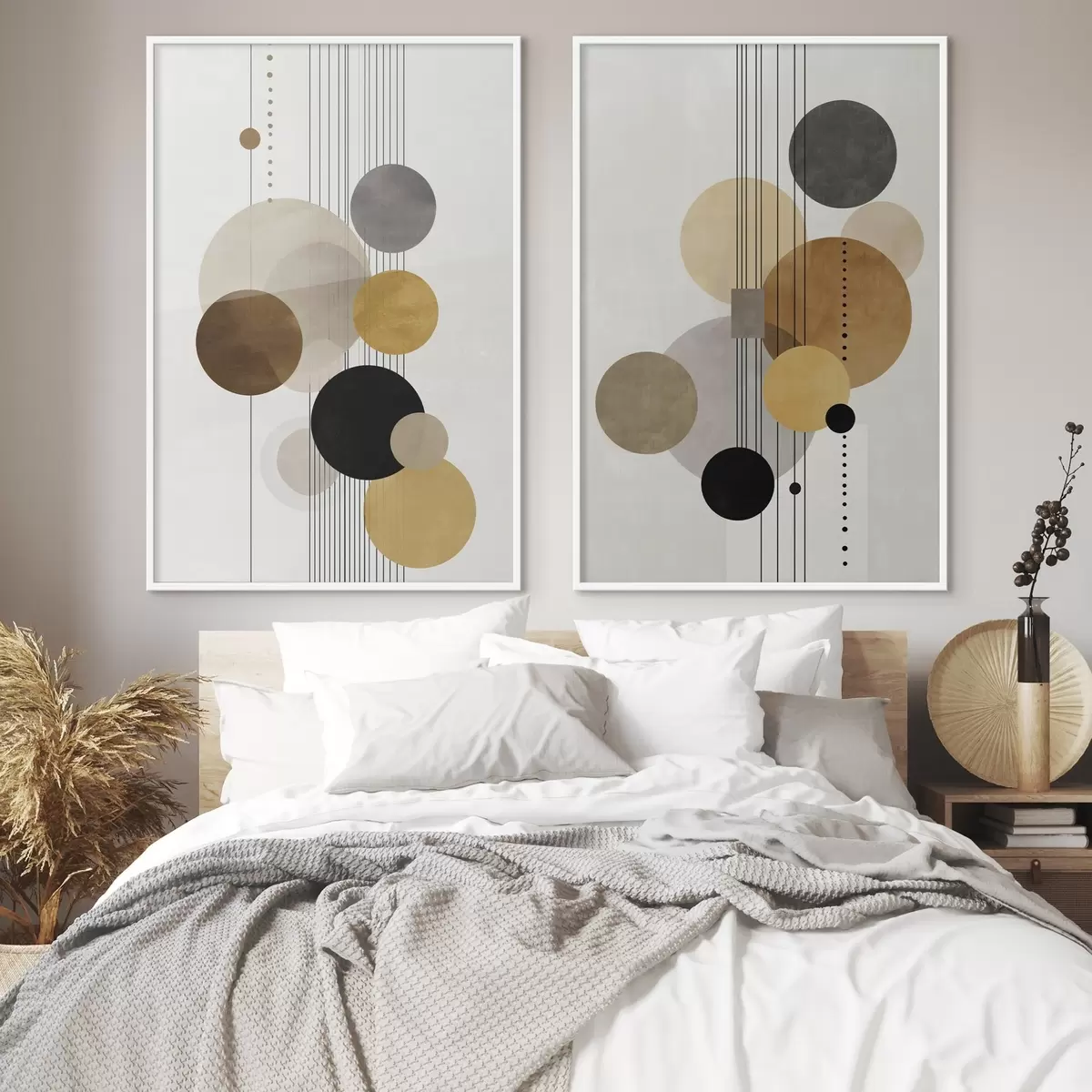 Poster abstractie met cirkels en lijnen in warme kleuren d01182