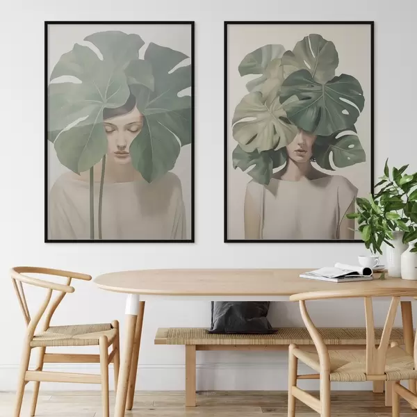 Poster Meisje met bladeren d01185