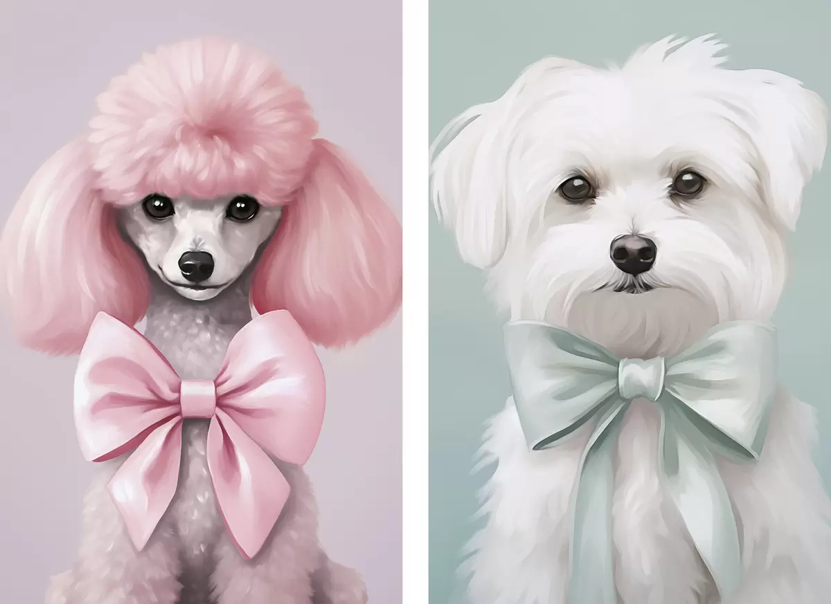Poster Hond met een strik d01193