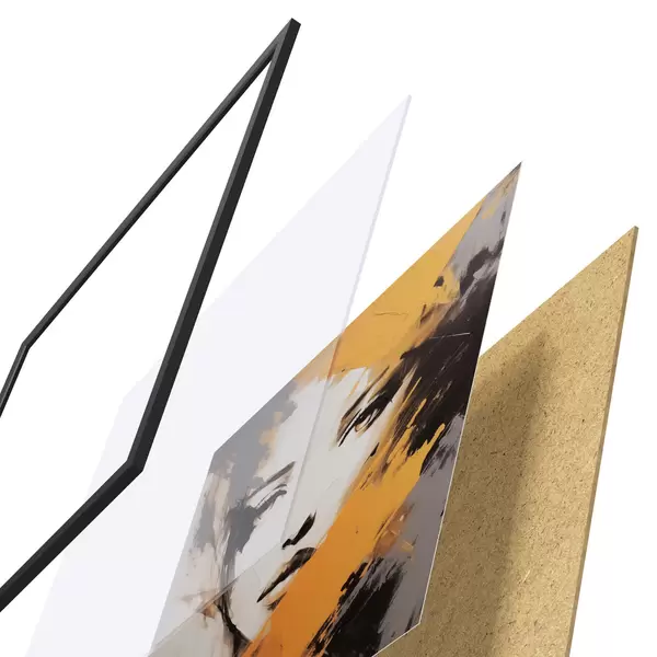 De poster bestaat uit een frame, plexiglas, geprinte afbeelding en spaanplaat achterkant. De poster kan meteen aan de muur worden gehangen dankzij de bevestigingen op de achterkant.