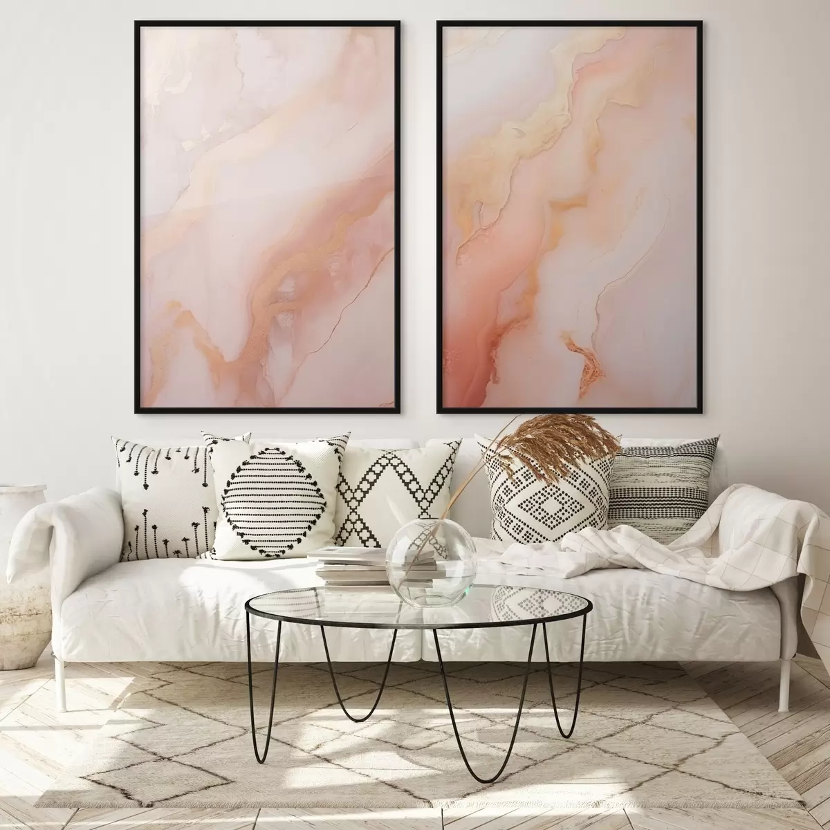 Je kunt het schilderij ophangen aan schroeven. Hiervoor leveren we bevestigingen bij onze foto's, zodat je de foto gemakkelijk kunt ophangen.