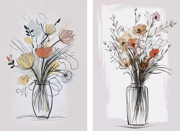 Poster Bloemen in een vaas, imitatie van een tekening Nr d01224