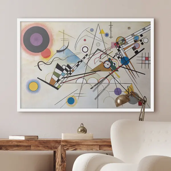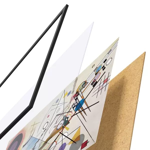 De poster bestaat uit een frame, plexiglas, geprinte afbeelding en spaanplaat achterkant. De poster kan meteen aan de muur worden gehangen dankzij de bevestigingen op de achterkant.