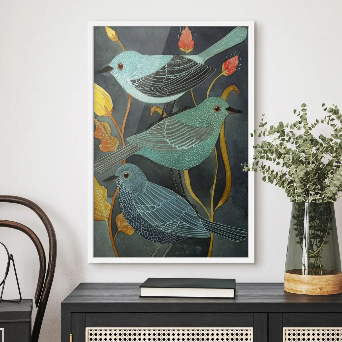 Poster Kleurrijke vogels te midden van levendig gebladerte Nr f03061