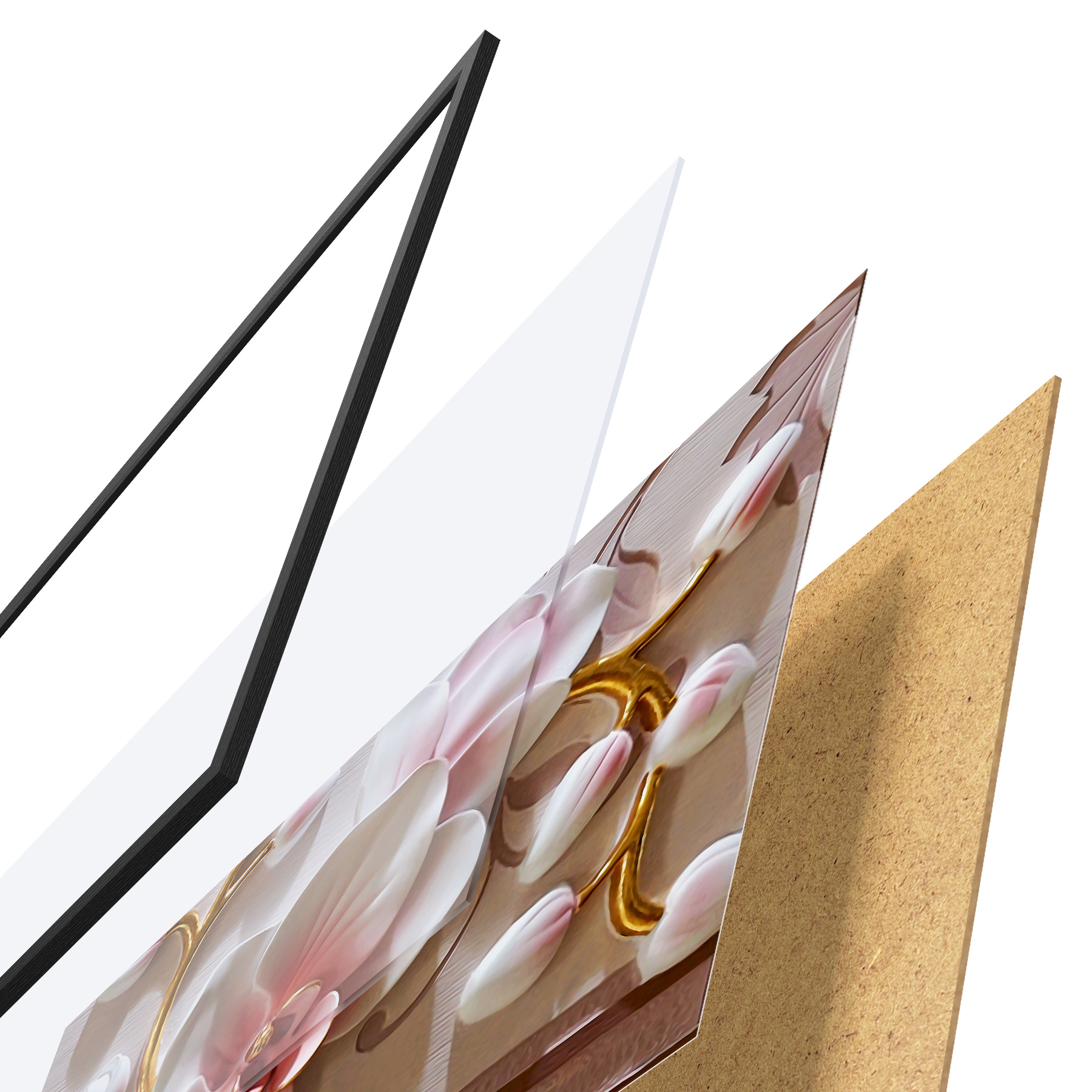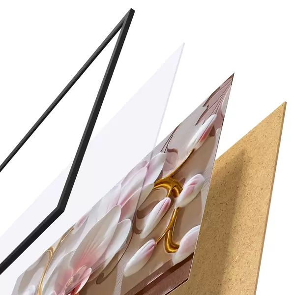 De poster bestaat uit een frame, plexiglas, geprinte afbeelding en spaanplaat achterkant. De poster kan meteen aan de muur worden gehangen dankzij de bevestigingen op de achterkant.