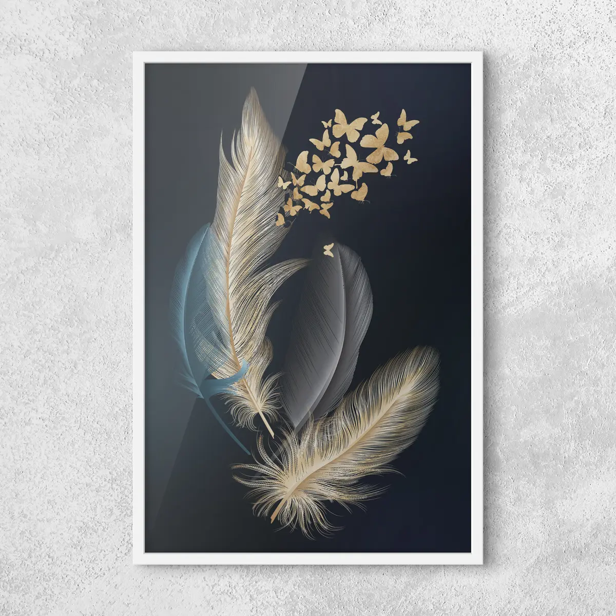 De poster bestaat uit een frame, plexiglas, geprinte afbeelding en spaanplaat achterkant. De poster kan meteen aan de muur worden gehangen dankzij de bevestigingen op de achterkant.