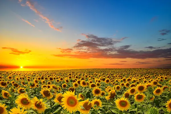 Poster Zonnebloemenveld bij zonsondergang. Een prachtig uitzicht Nr f05429