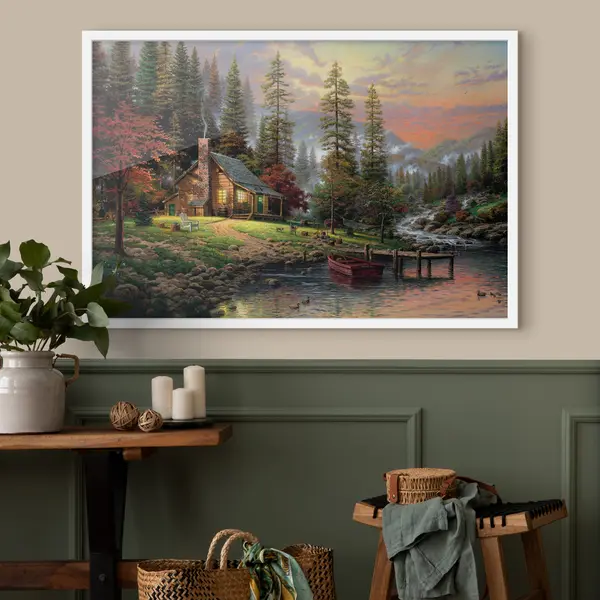 Poster Rustige hut aan de vredige rivier Nr f15556
