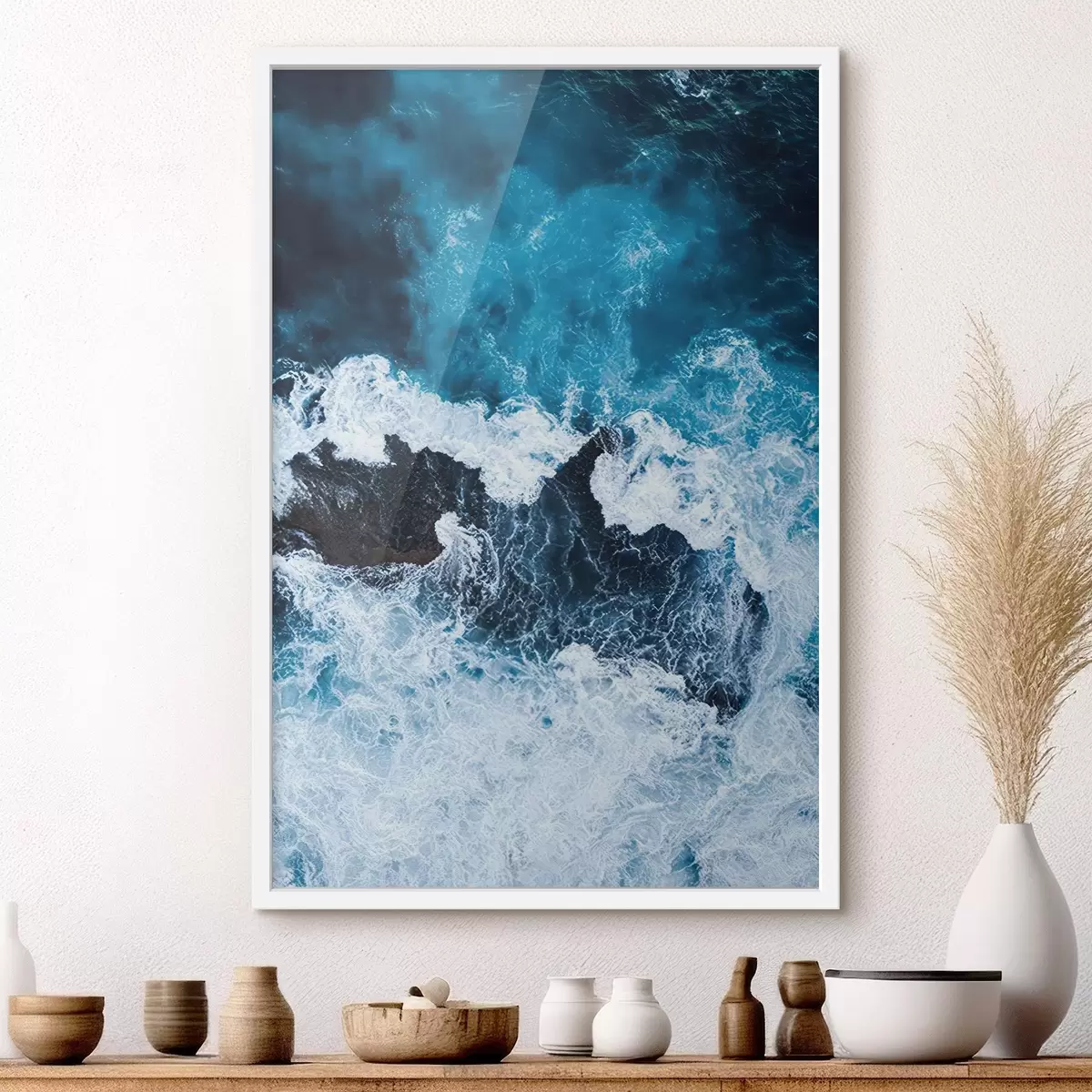 Poster Golven dansen over rotsachtige kustlijnen Nr f21429