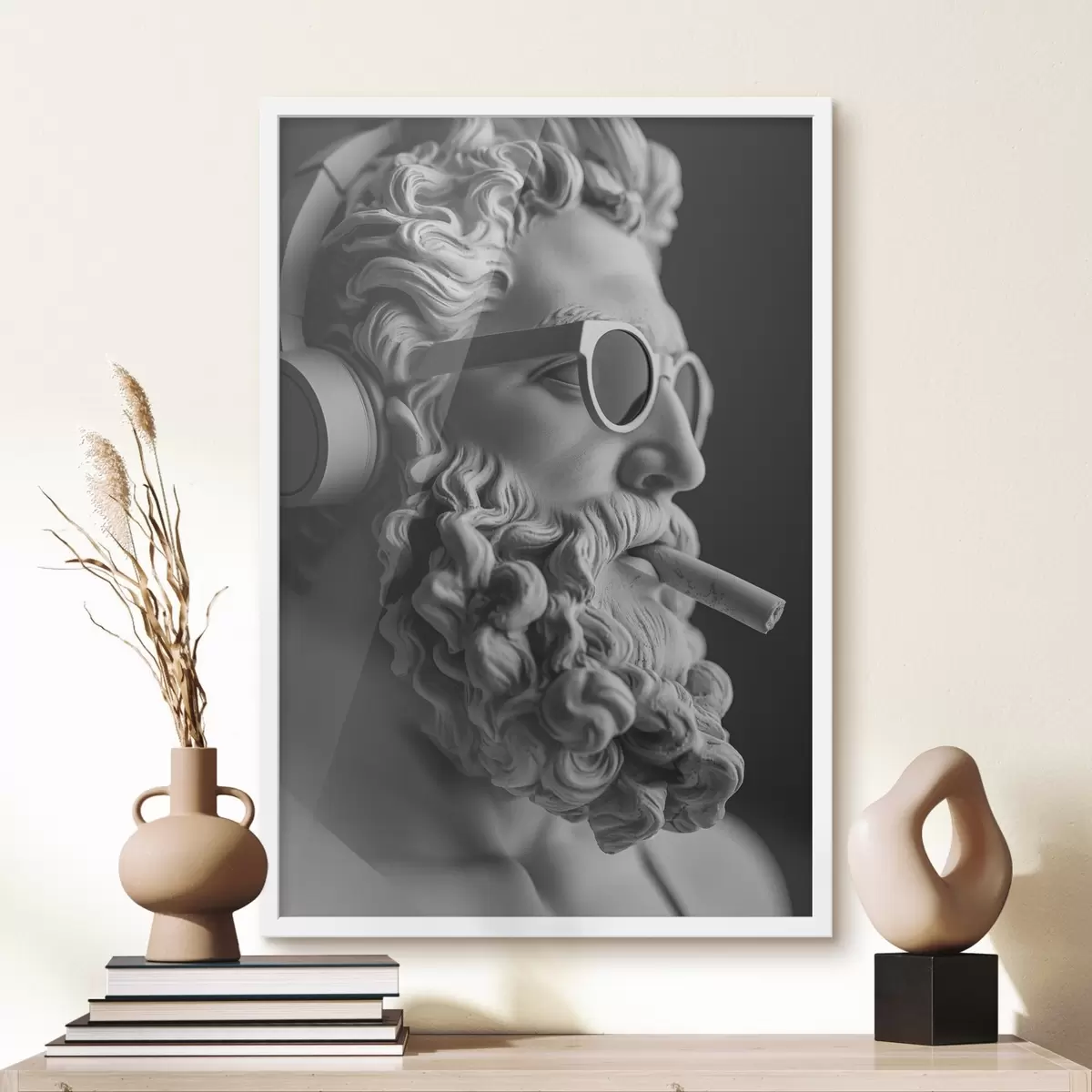 Poster zwart-wit oudgrieks beeld van Zeus in moderne stijl f26122