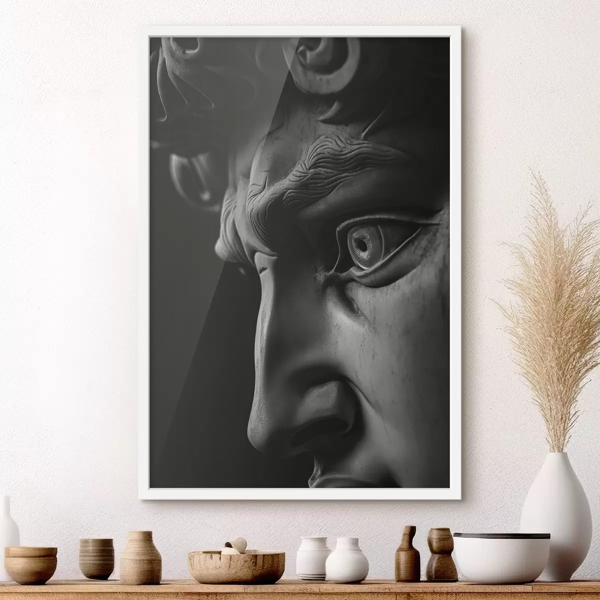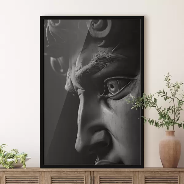 De poster bestaat uit een frame, plexiglas, geprinte afbeelding en spaanplaat achterkant. De poster kan meteen aan de muur worden gehangen dankzij de bevestigingen op de achterkant.