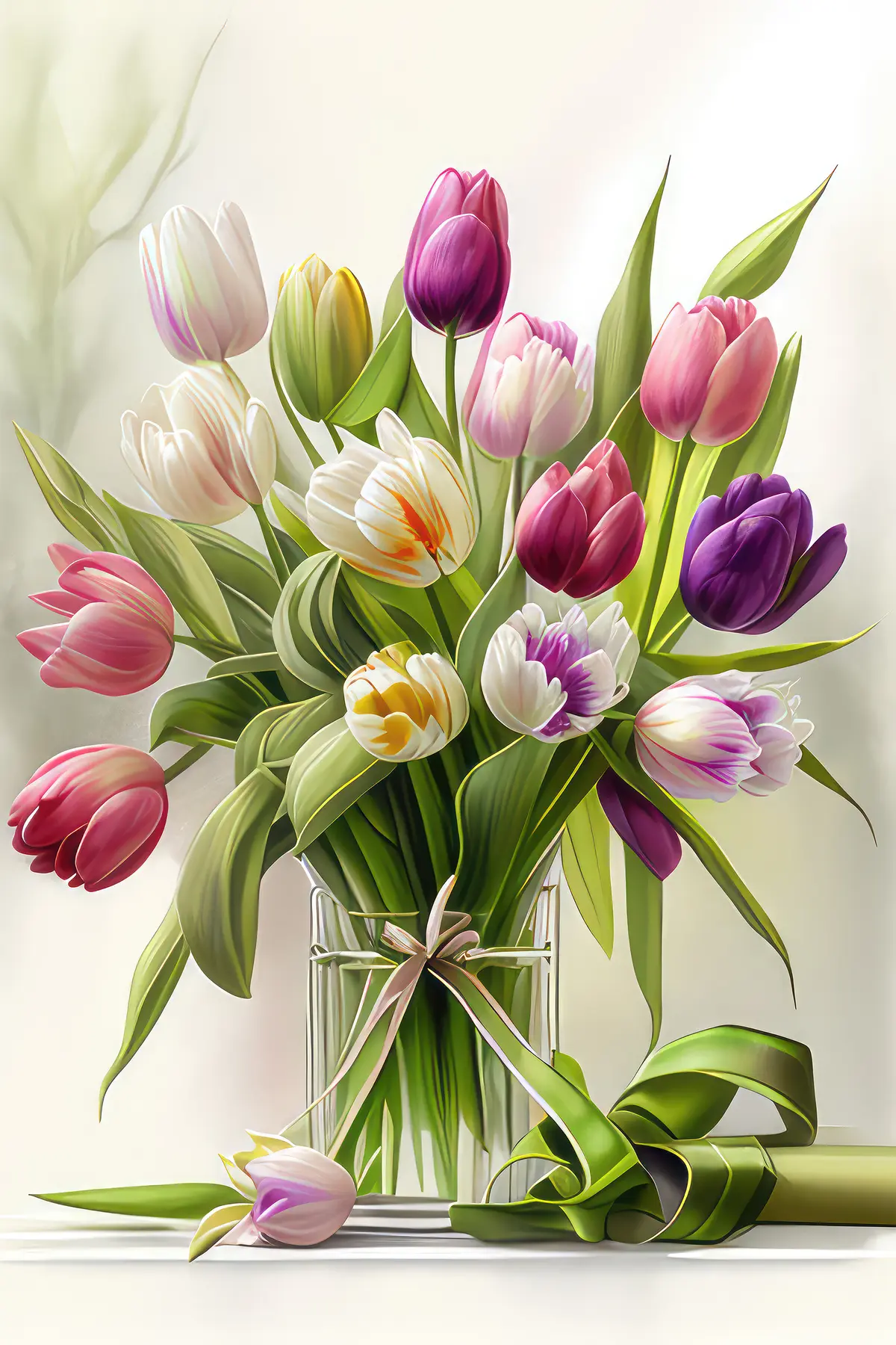 Poster Kleurrijke tulpen in een glazen vaas Nr f31219