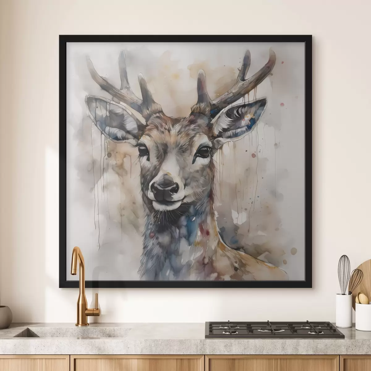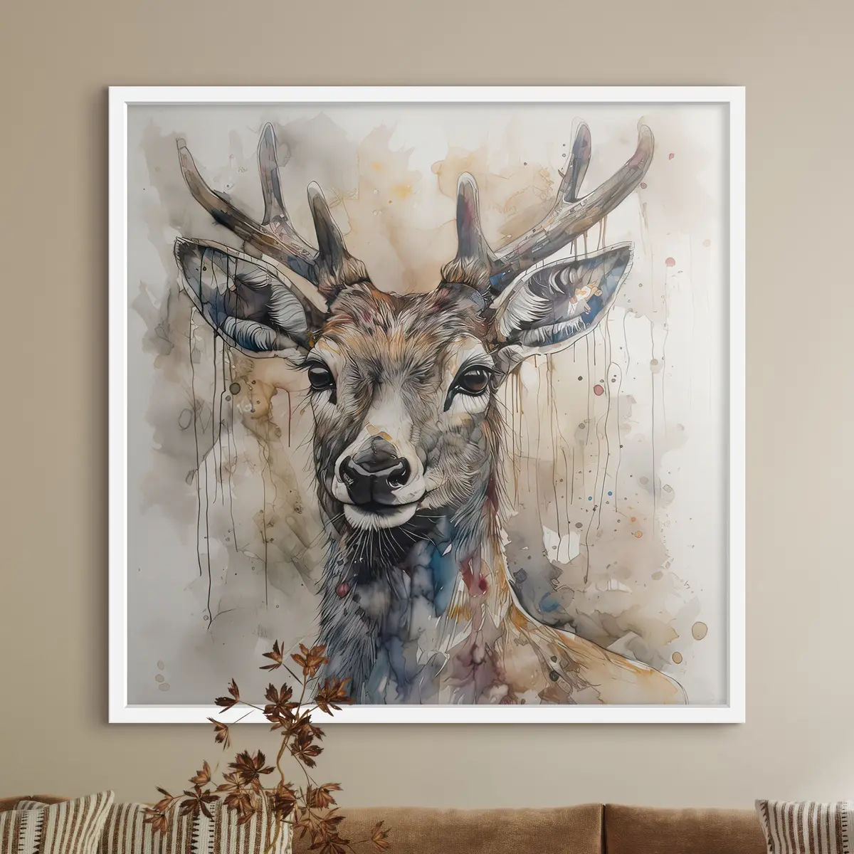 Poster Herten in aquarelstijl f32300