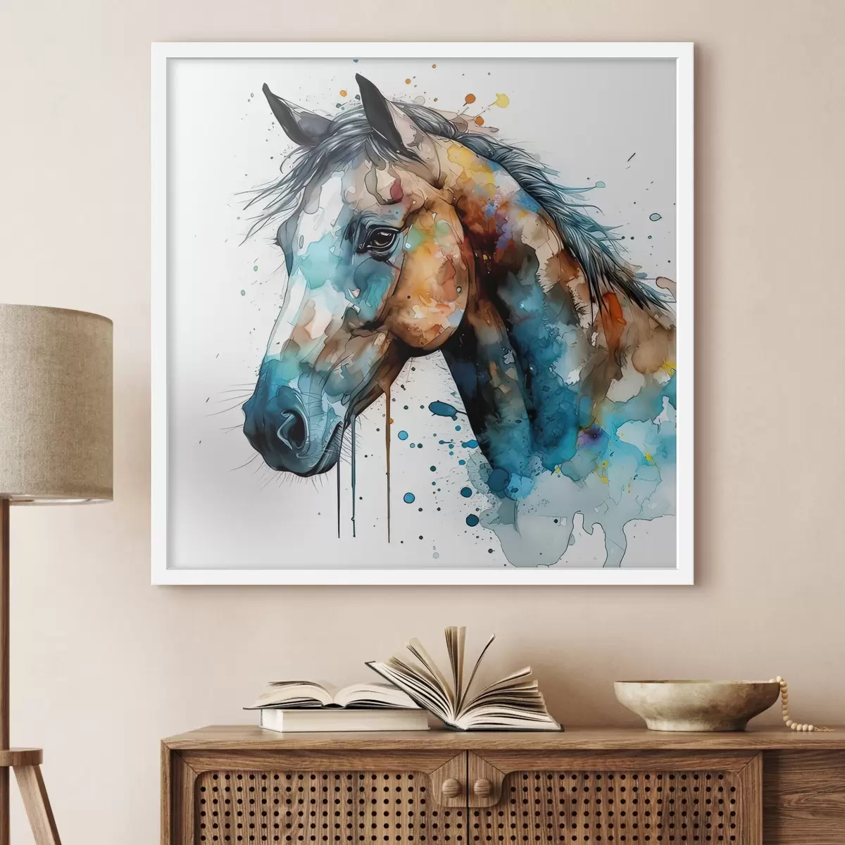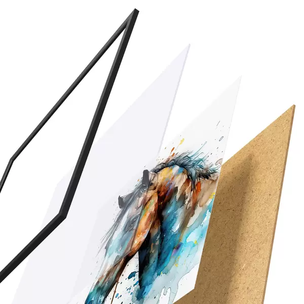 De poster bestaat uit een frame, plexiglas, geprinte afbeelding en spaanplaat achterkant. De poster kan meteen aan de muur worden gehangen dankzij de bevestigingen op de achterkant.