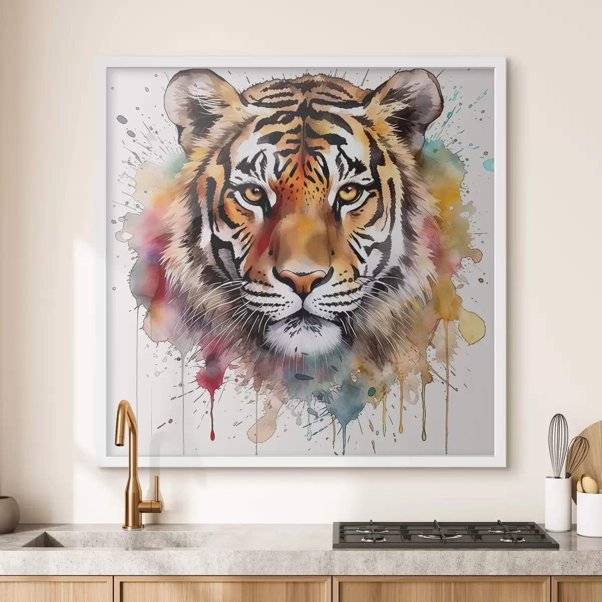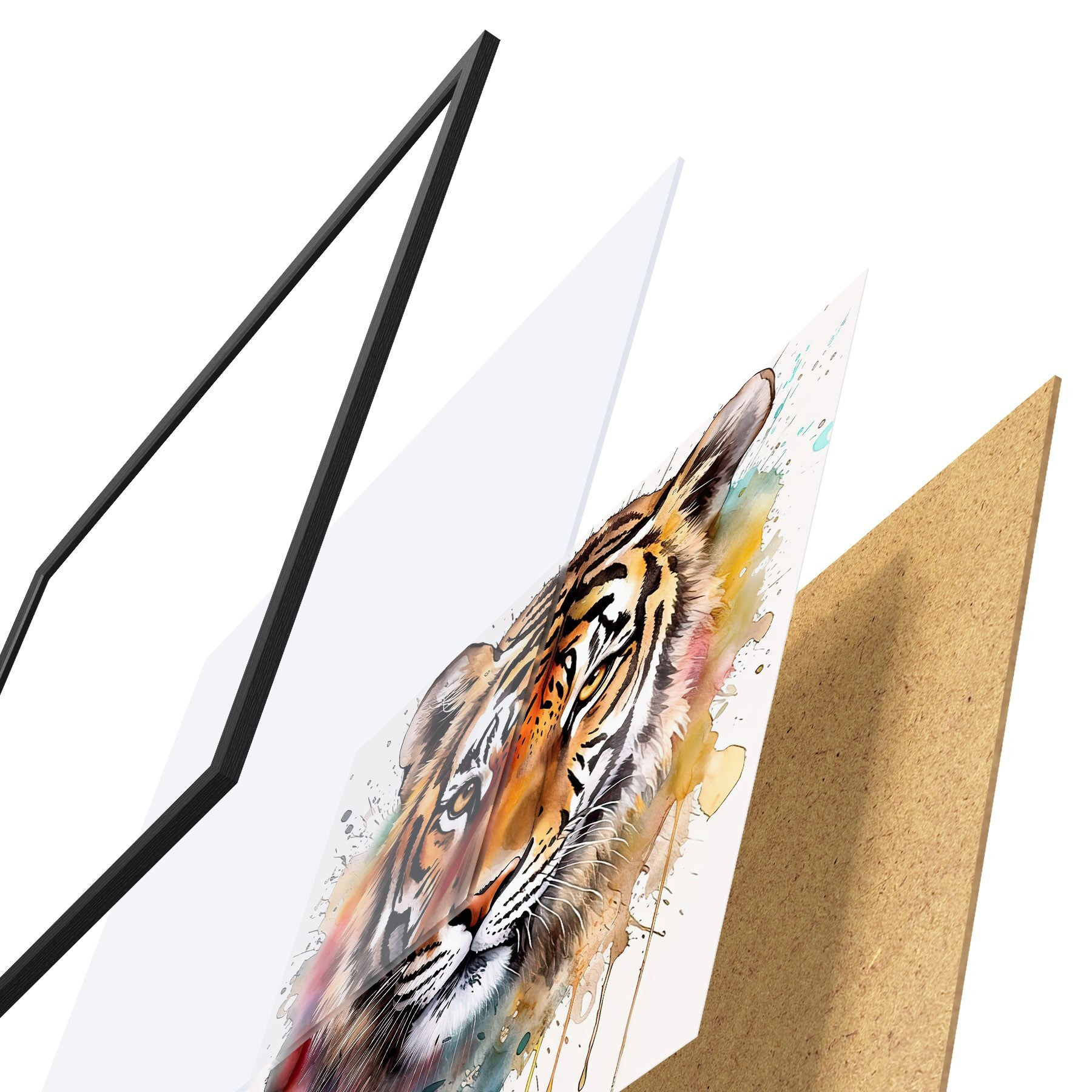 De poster bestaat uit een frame, plexiglas, geprinte afbeelding en spaanplaat achterkant. De poster kan meteen aan de muur worden gehangen dankzij de bevestigingen op de achterkant.