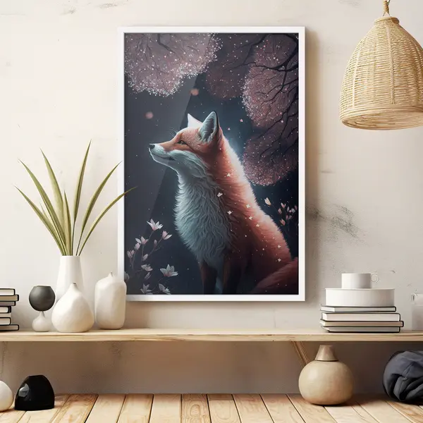 Poster Een vos in een dromerig landschap Nr f32548