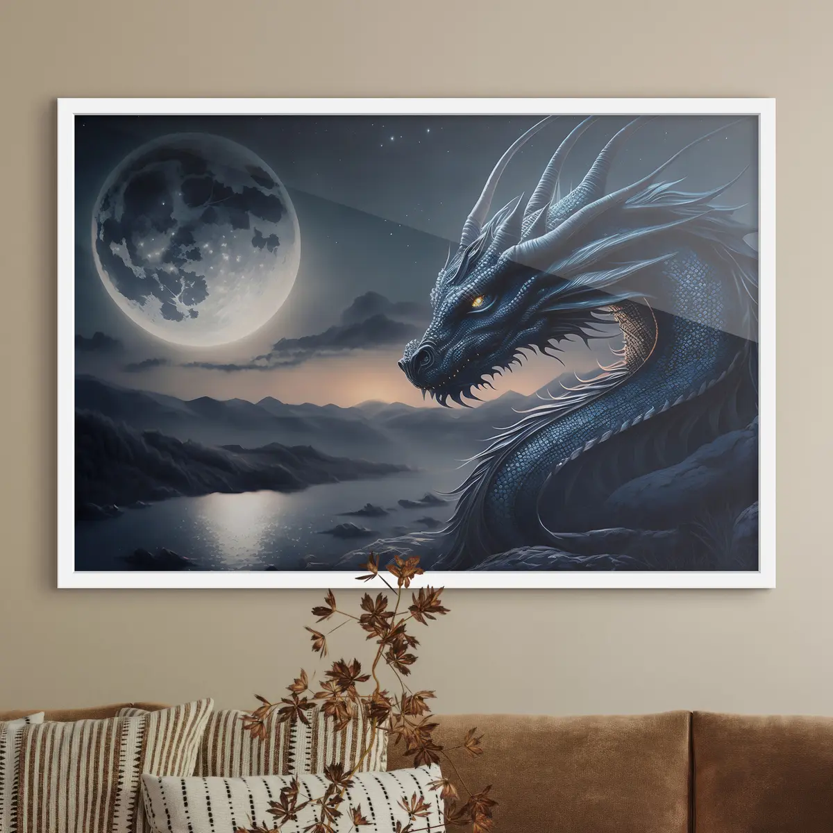 Poster Majestueuze draak onder het maanlicht Nr f32612