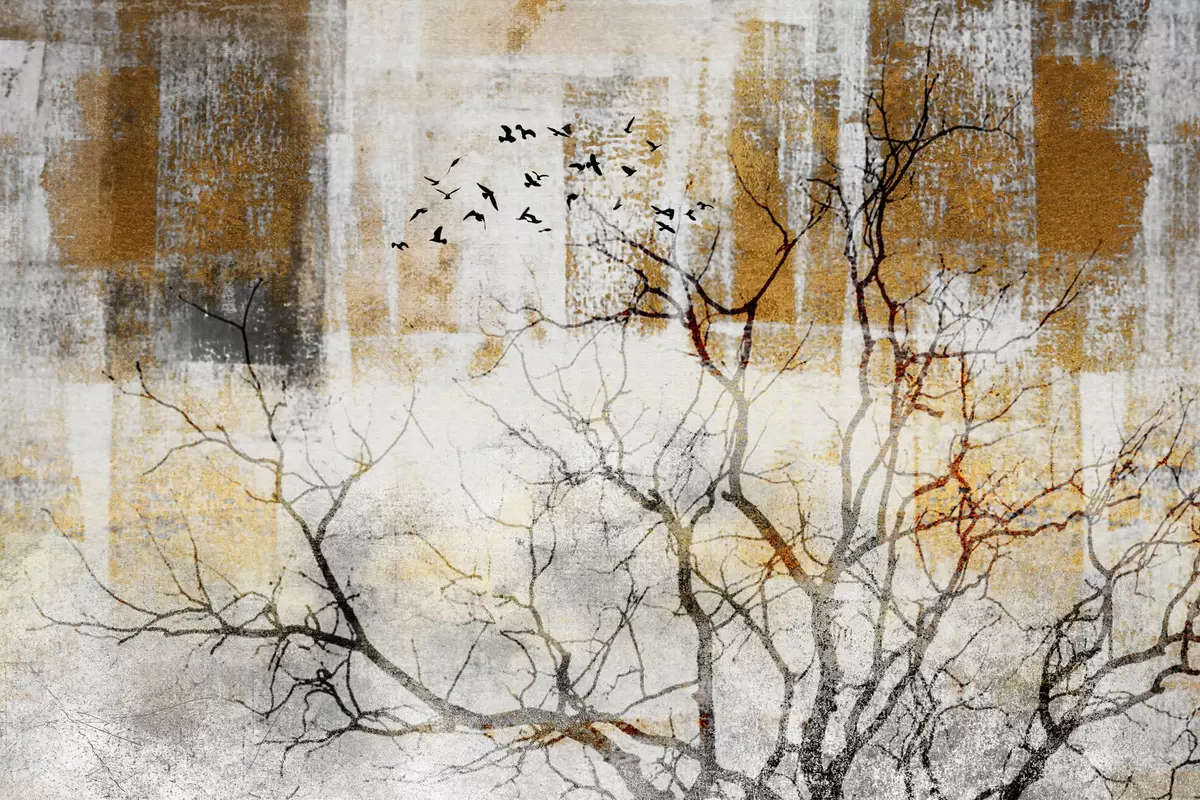 Poster Rustig landschap met vogels in vlucht f33076