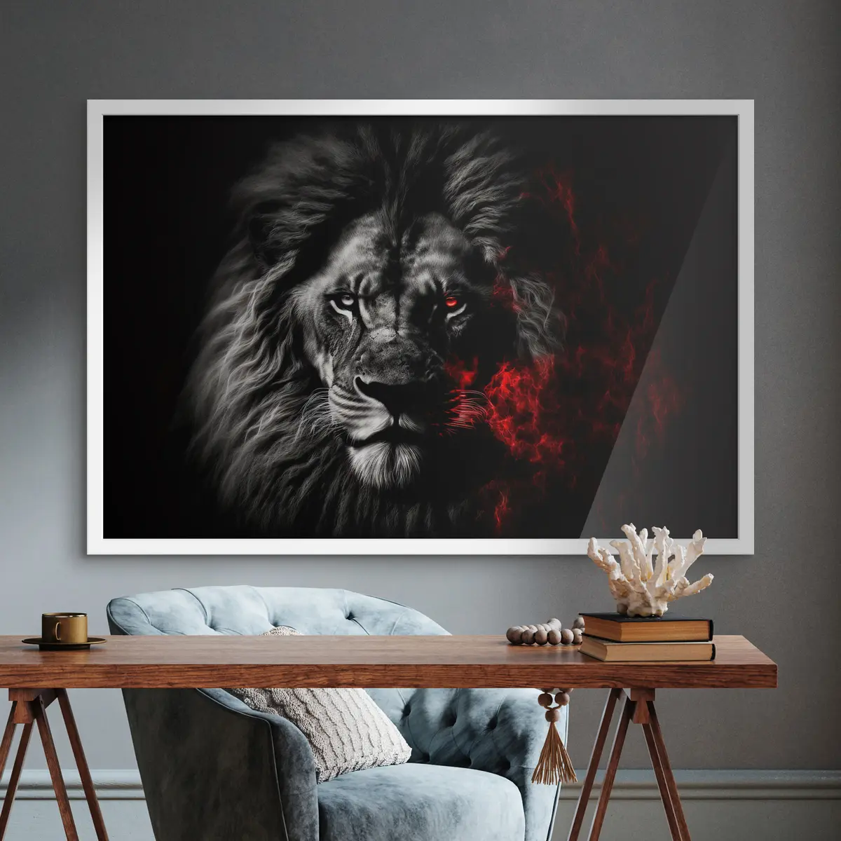 Poster Majestueuze leeuw met woeste uitdrukking f33095