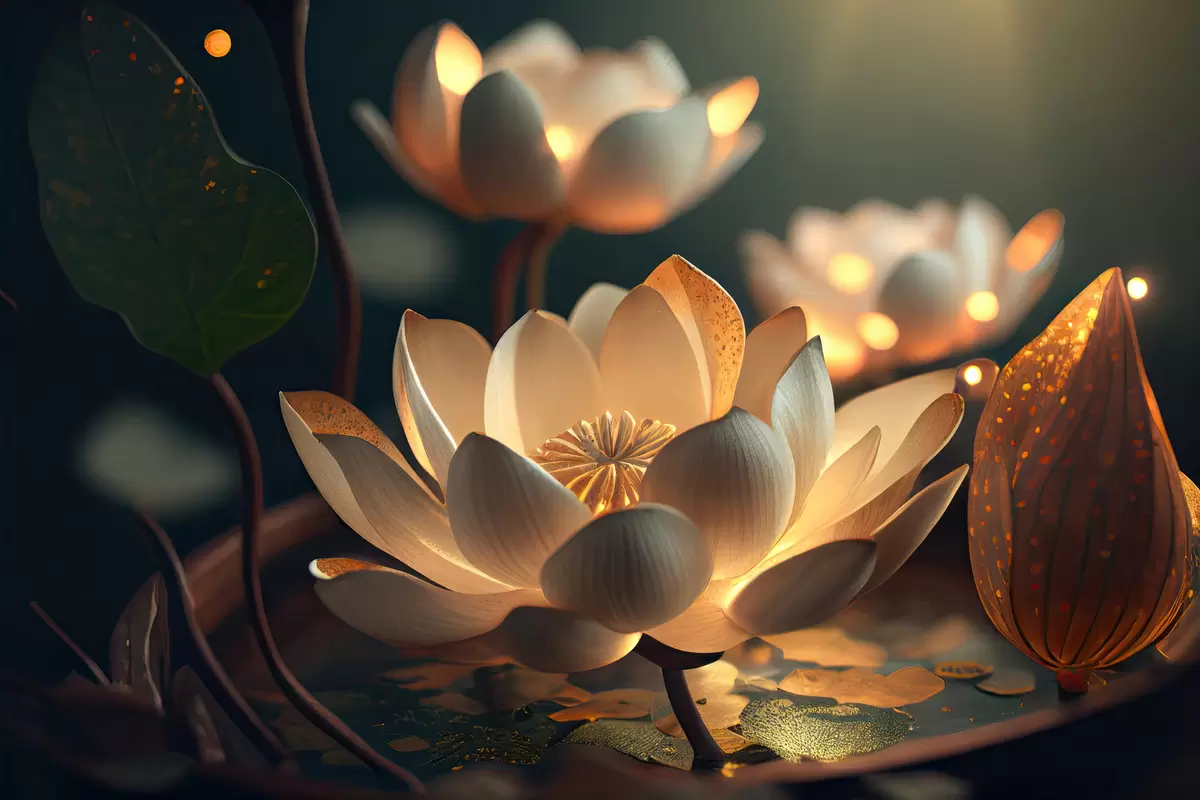 Poster Elegante bloemen die zacht licht werpen Nr f33100