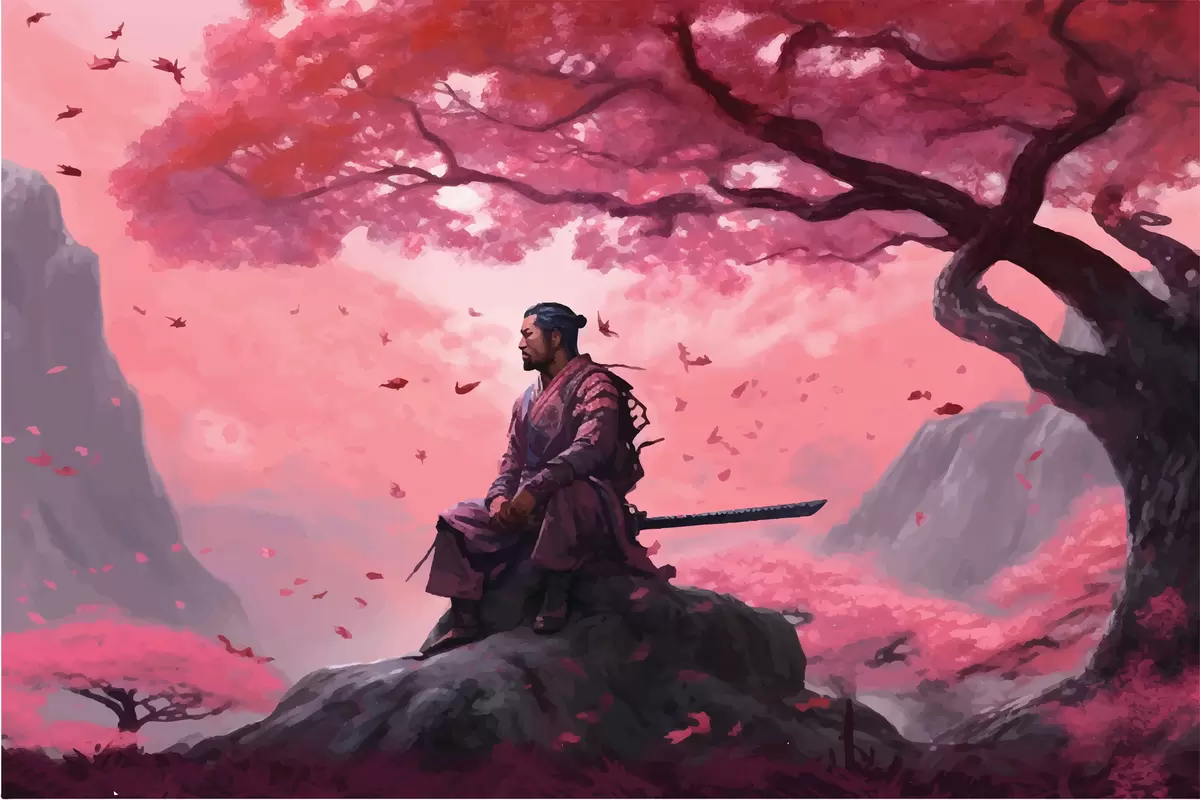 Poster Krijger in een rustig droomlandschap Nr f33526