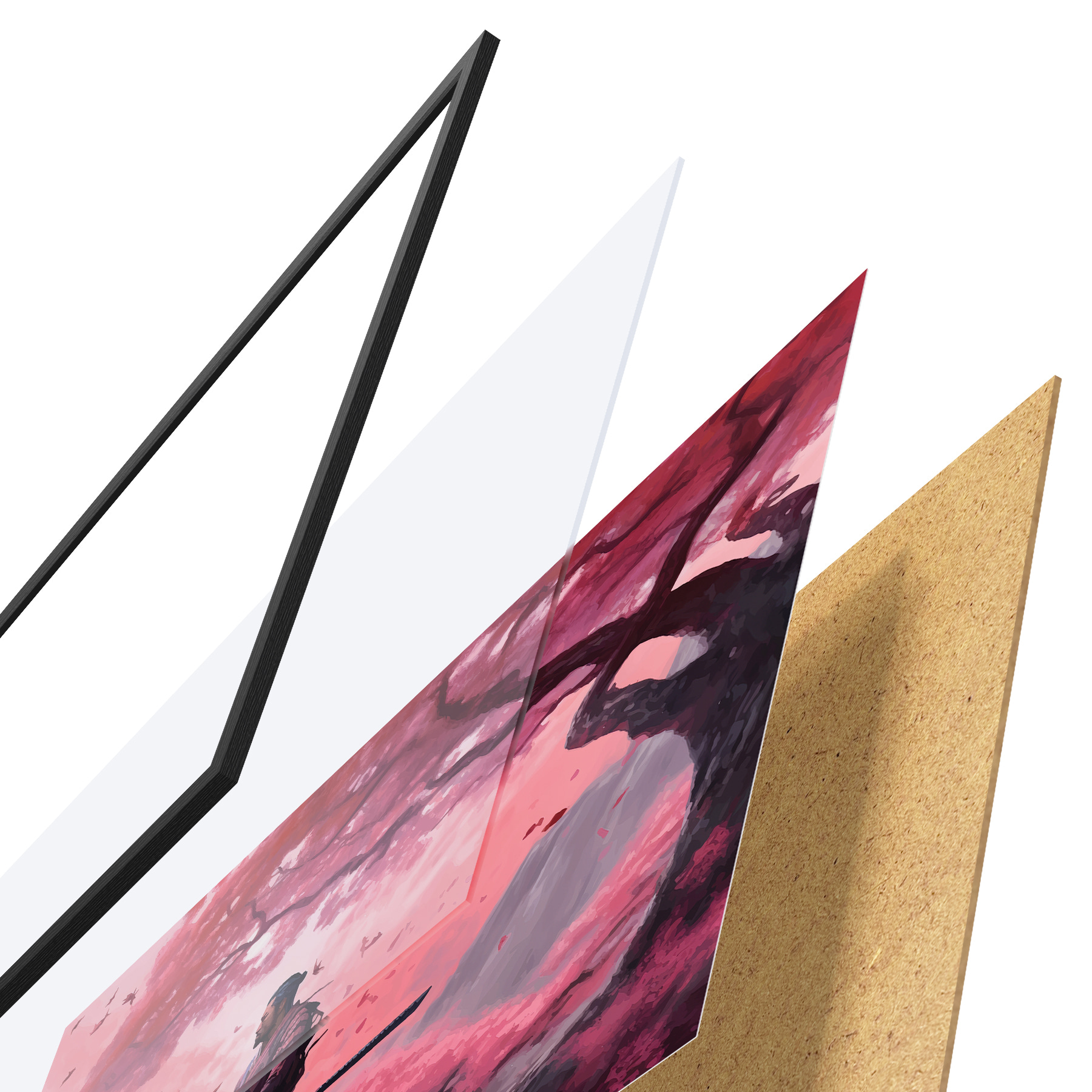 De poster bestaat uit een frame, plexiglas, geprinte afbeelding en spaanplaat achterkant. De poster kan meteen aan de muur worden gehangen dankzij de bevestigingen op de achterkant.