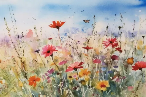 Poster Kleurrijke wilde bloemen in een zonnige weide Nr f33668