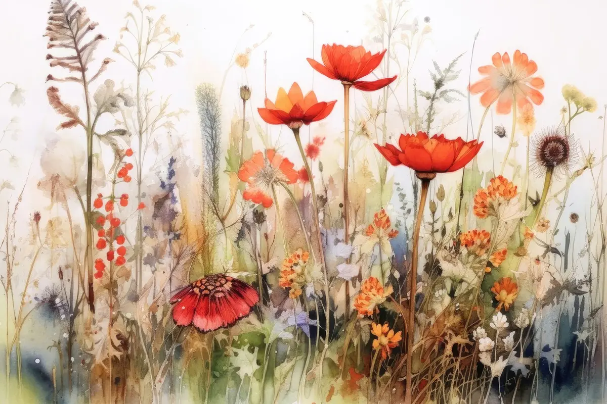 Poster Levendige bloemen in zachte aquareltinten Nr f33675