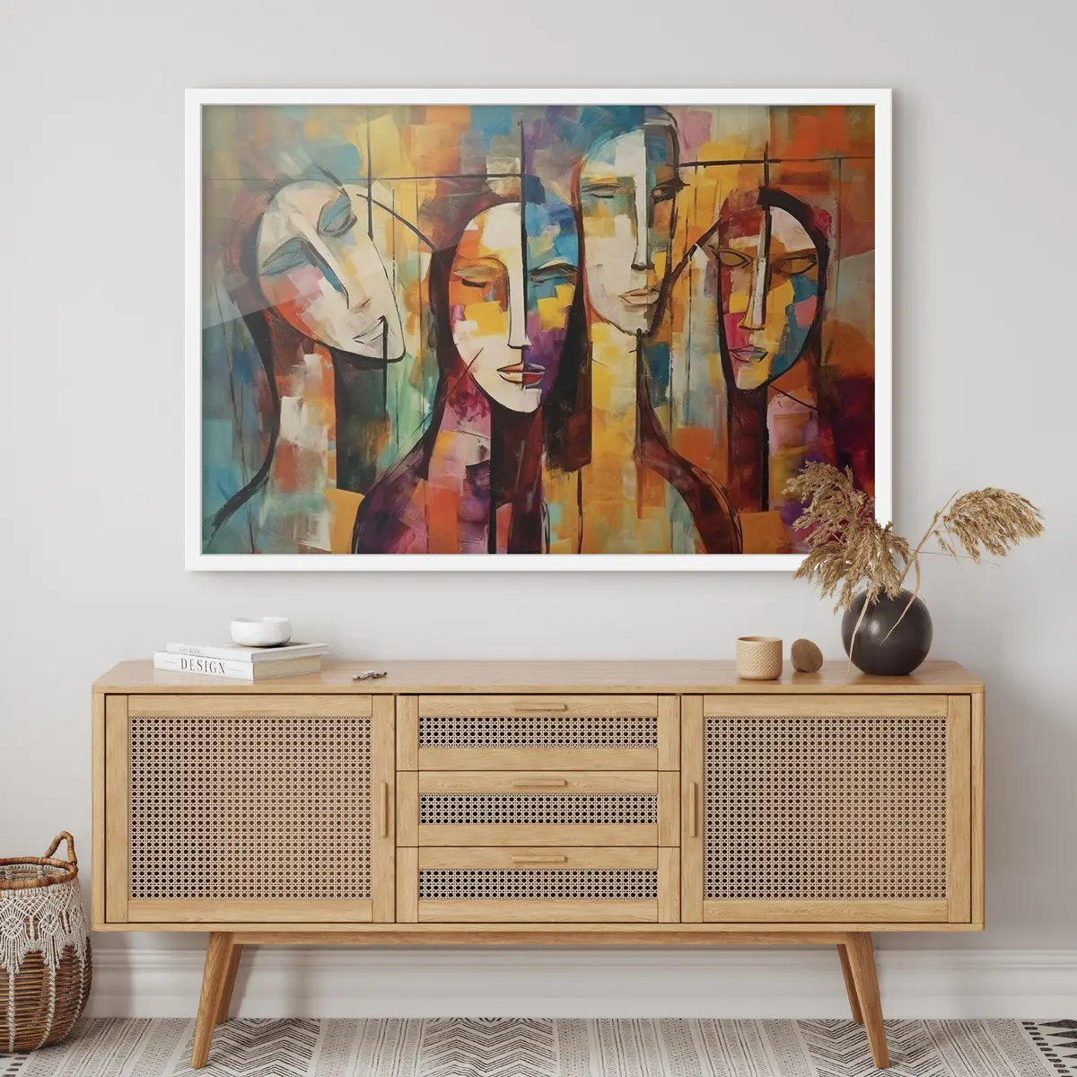 Poster Abstracte gezichten in levendige kleuren Nr f33845