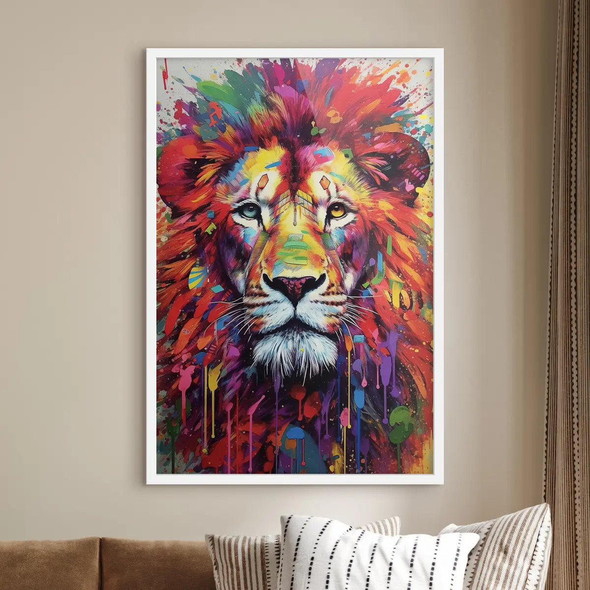 Poster Levendige leeuw die uit kleuren tevoorschijn komt Nr f34283