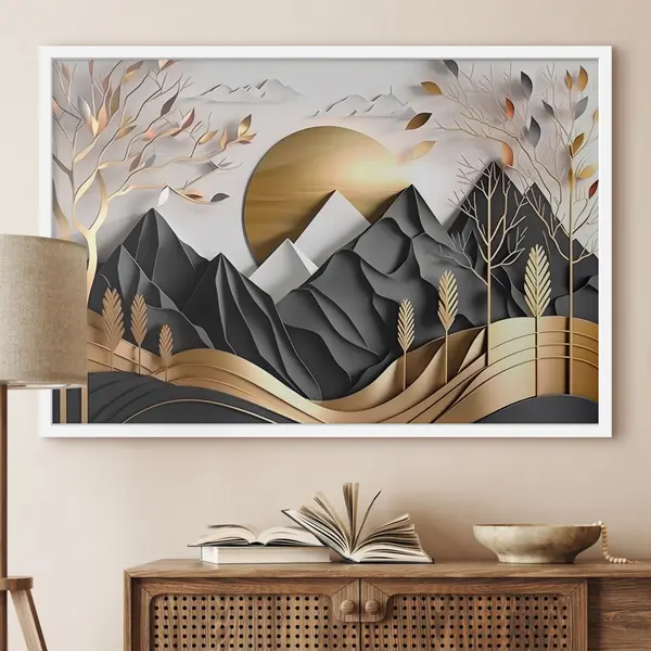 Je kunt het schilderij ophangen aan schroeven. Hiervoor leveren we bevestigingen bij onze foto's, zodat je de foto gemakkelijk kunt ophangen.