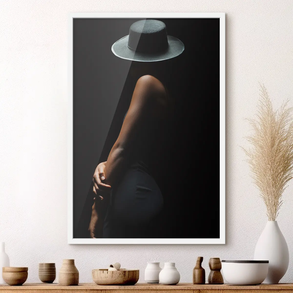De poster bestaat uit een frame, plexiglas, geprinte afbeelding en spaanplaat achterkant. De poster kan meteen aan de muur worden gehangen dankzij de bevestigingen op de achterkant.