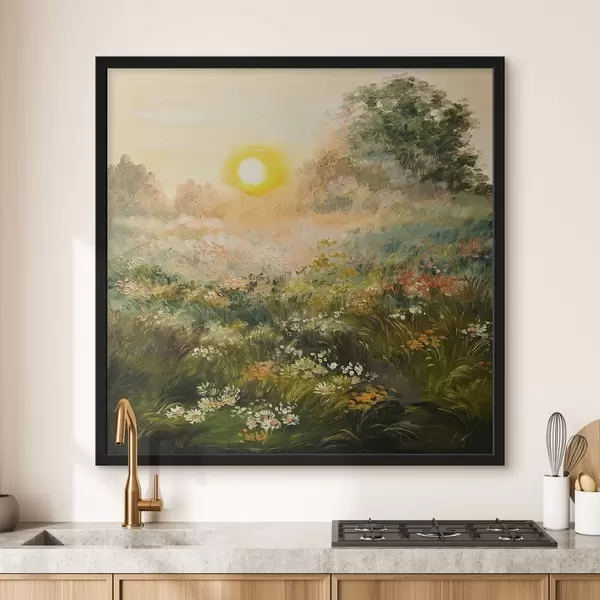 Poster Olieverfschilderij - zonsopgang in het veld Nr f34612